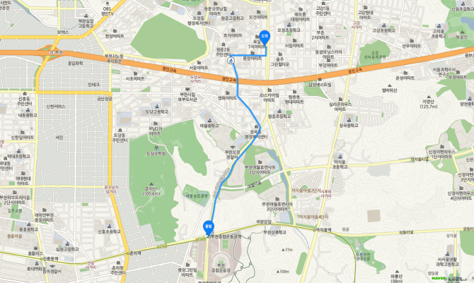 부천종합운동장역 하차 후 58-B번 버스 오시는 길
