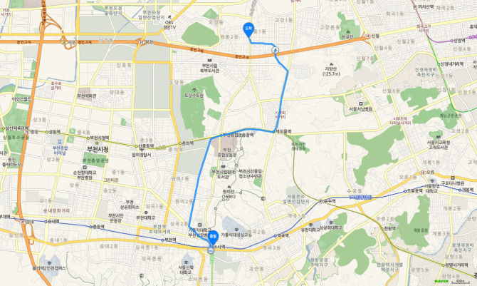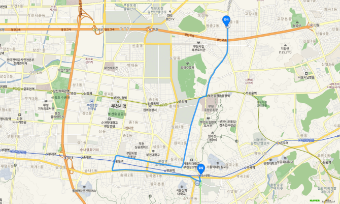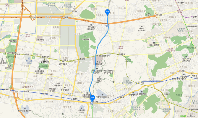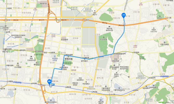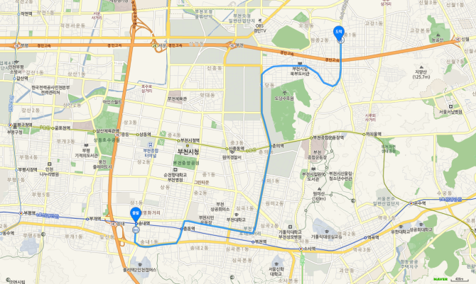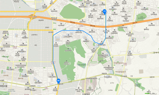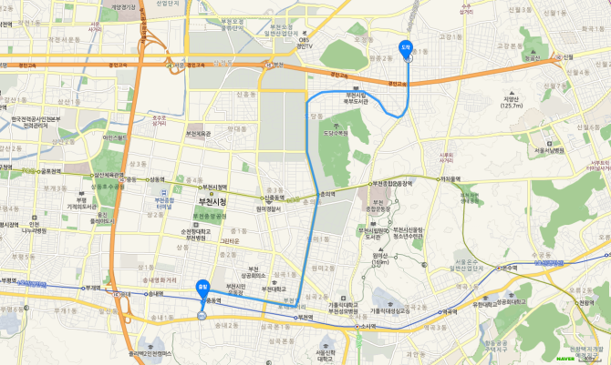 소사역 하차 후 75번 버스 오시는 길