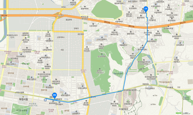 소사역 하차 후 95번 버스 오시는 길